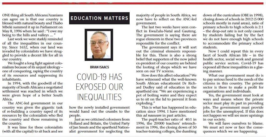Covid-19 HAS EXPOSED OUR INEQUALITIES - BRIAN ISSACS | 409 downloads | |